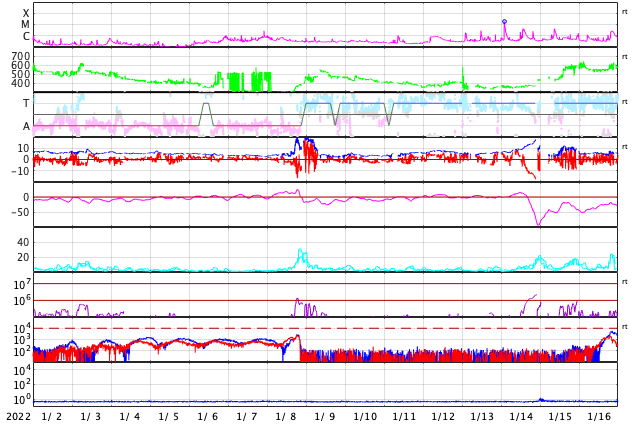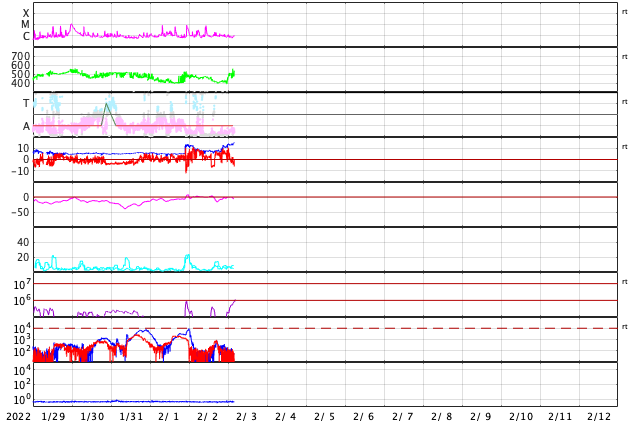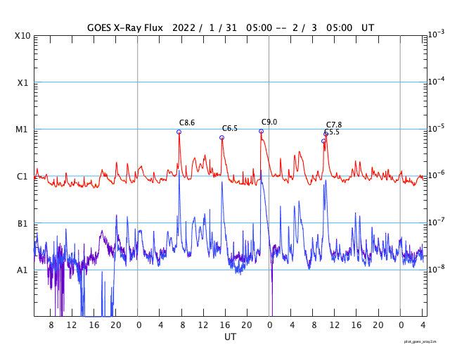 GOES衛星の太陽X線強度。赤・橙 = 0.1〜0.8 nm、青・紫 = 0.05〜0.4 nm (c) データ:NOAA/SWPC、作図:宇宙天気ニュース ![]() | |||||||||||||||||||||||||||||||||||||||||||||||||||||||||||||||||||||||||||||||||||||||||||||||||||||||||||||||||||||||||||||||||||||||||||||||||||||||||||||||||||||||||||||||||||||||||||||||||||||||||||||||||||||||||||||||||||||||||||||||||||||||||||