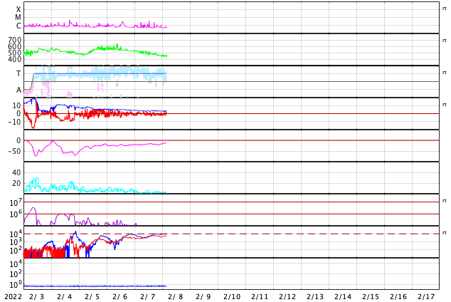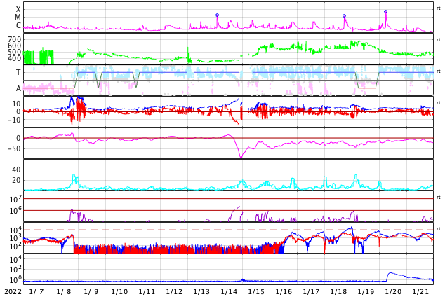 GOES衛星の太陽X線強度。赤・橙 = 0.1〜0.8 nm、青・紫 = 0.05〜0.4 nm (c) データ:NOAA/SWPC、作図:宇宙天気ニュース ![]() | |||||||||||||||||||||||||||||||||||||||||||||||||||||||||||||||||||||||||||||||||||||||||||||||||||||||||||||||||||||||||||||||||||||||||||||||||||||||||||||||||||||||||||||||||||||||||||||||||||||||||||||||||||||||||||||||||||