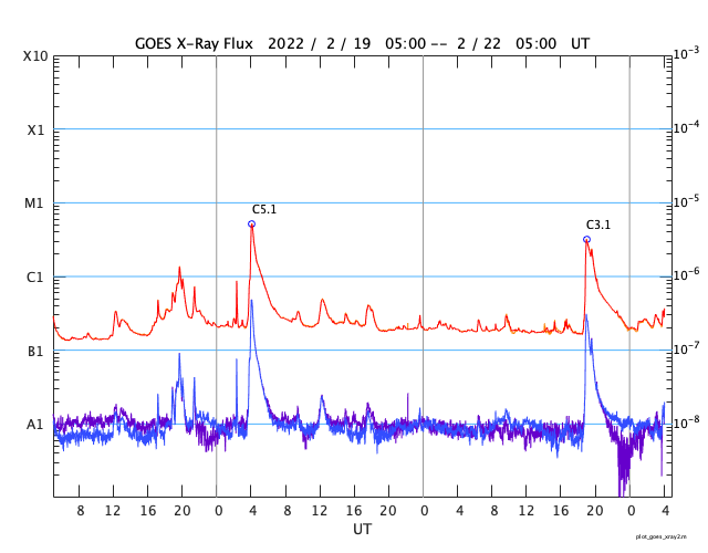 GOES衛星の太陽X線強度。赤・橙 = 0.1〜0.8 nm、青・紫 = 0.05〜0.4 nm (c) データ:NOAA/SWPC、作図:宇宙天気ニュース ![]() | ||||||||||||||||||||||||||||||||||||||||||||||||||||||||||||||||||||||||||||||||||||||||||||||||||||||||||||||||||||||||||||||||||||||||||||||||||||||||||||||||||||||||||||||||||||||||||||||||||||||||||||||||||||||||||||