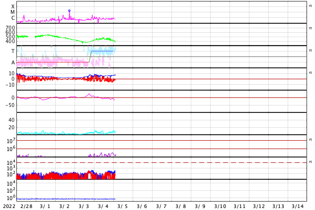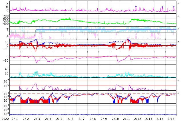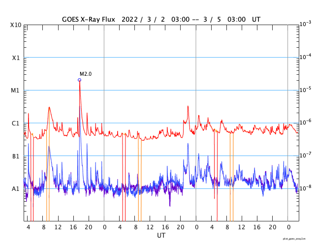 GOES衛星の太陽X線強度。赤・橙 = 0.1〜0.8 nm、青・紫 = 0.05〜0.4 nm (c) データ:NOAA/SWPC、作図:宇宙天気ニュース ![]() | |||||||||||||||||||||||||||||||||||||||||||||||||||||||||||||||||||||||||||||||||||||||||||||||||||||||||||||||||||||||||||||||||||||||||||||||||||||||||||||||||||||||||||||||||||||||||||||||||||||||||||||||||||||||||||||||||