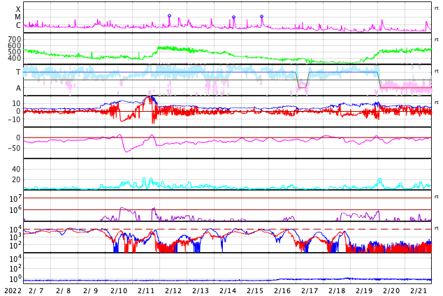 GOES衛星による、静止衛星軌道における高エネルギー電子 ( 2 MeV 以上 ) の変化 (c) データ:NOAA/SWPC、作図:宇宙天気ニュース ![]() | ||||||||||||||||||||||||||||||||||||||||||||||||||||||||||||||||||||||||||||||||||||||||||||||||||||||||||||||||||||||||||||||||||||||||||||||||||||||||||||||||||||||||||||||||||||||||||||||||||||||||||||||||||||||||||||||||||