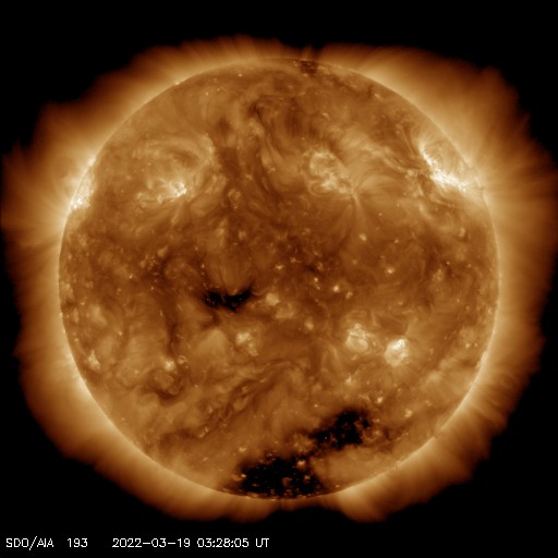 SDO衛星AIA193では、南極から伸びるコロナホールが西に進み、