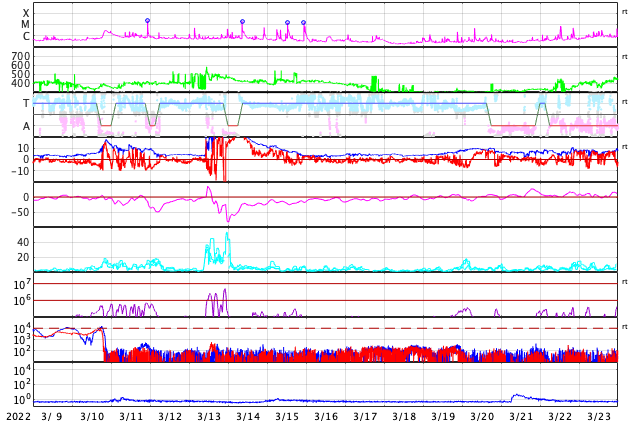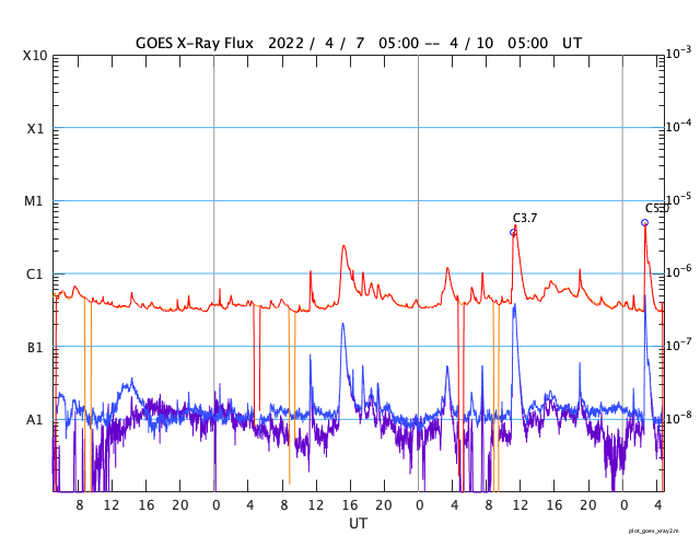 GOES衛星の太陽X線強度。赤・橙 = 0.1〜0.8 nm、青・紫 = 0.05〜0.4 nm (c) データ:NOAA/SWPC、作図:宇宙天気ニュース ![]() | |||||||||||||||||||||||||||||||||||||||||||||||||||||||||||||||||||||||||||||||||||||||||||||||||||||||||||||||||||||||||||||||||||||||||||||||||||||||||||||||||||||||||||||||||||||||||||||||||||||||||||||||||||||||||