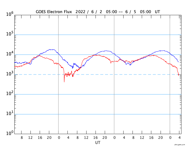 GOES衛星による、静止衛星軌道における高エネルギー電子 ( 2 MeV 以上 ) の変化 (c) データ:NOAA/SWPC、作図:宇宙天気ニュース ![]() | ||||||||||||||||||||||||||||||||||||||||||||||||||||||||||||||||||||||||||||||||||||||||||||||||||||||||||||||||||||||||||||||||||||||||||||||||||||||||||||||||||||||||||||||||||||||||||||||||||||||||||||||||||||||||||||||||||||