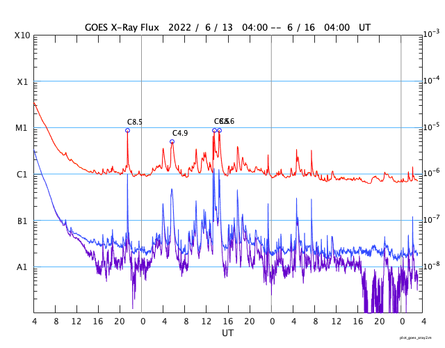 GOES衛星の太陽X線強度。赤・橙 = 0.1〜0.8 nm、青・紫 = 0.05〜0.4 nm (c) データ:NOAA/SWPC、作図:宇宙天気ニュース ![]() | ||||||||||||||||||||||||||||||||||||||||||||||||||||||||||||||||||||||||||||||||||||||||||||||||||||||||||||||||||||||||||||||||||||||||||||||||||||||||||||||||||||||||||||||||||||||||||||||||||||||||||||||||||||||||||||||||||||||||||||||||||||||||||||||||||||||||||