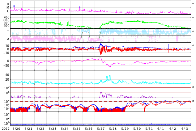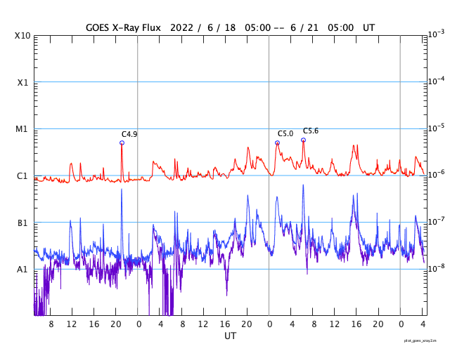GOES衛星の太陽X線強度。赤・橙 = 0.1〜0.8 nm、青・紫 = 0.05〜0.4 nm (c) データ:NOAA/SWPC、作図:宇宙天気ニュース ![]() | |||||||||||||||||||||||||||||||||||||||||||||||||||||||||||||||||||||||||||||||||||||||||||||||||||||||||||||||||||||||||||||||||||||||||||||||||||||||||||||||||||||||||||||||||||||||||||||||||||||||||||||||||||||||||||||||||||||||||||||||||||||||||||||||