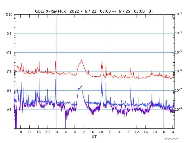 GOES衛星の太陽X線強度。赤・橙 = 0.1〜0.8 nm、青・紫 = 0.05〜0.4 nm (c) データ:NOAA/SWPC、作図:宇宙天気ニュース ![]() | |||||||||||||||||||||||||||||||||||||||||||||||||||||||||||||||||||||||||||||||||||||||||||||||||||||||||||||||||||||||||||||||||||||||||||||||||||||||||||||||||||||||||||||||||||||||||||||||||||||||||||||||||||||||||||||||||||||