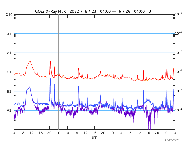 GOES衛星の太陽X線強度。赤・橙 = 0.1〜0.8 nm、青・紫 = 0.05〜0.4 nm (c) データ:NOAA/SWPC、作図:宇宙天気ニュース ![]() | |||||||||||||||||||||||||||||||||||||||||||||||||||||||||||||||||||||||||||||||||||||||||||||||||||||||||||||||||||||||||||||||||||||||||||||||||||||||||||||||||||||||||||||||||||||||||||||||||||||||||||||||||||||||||||||
