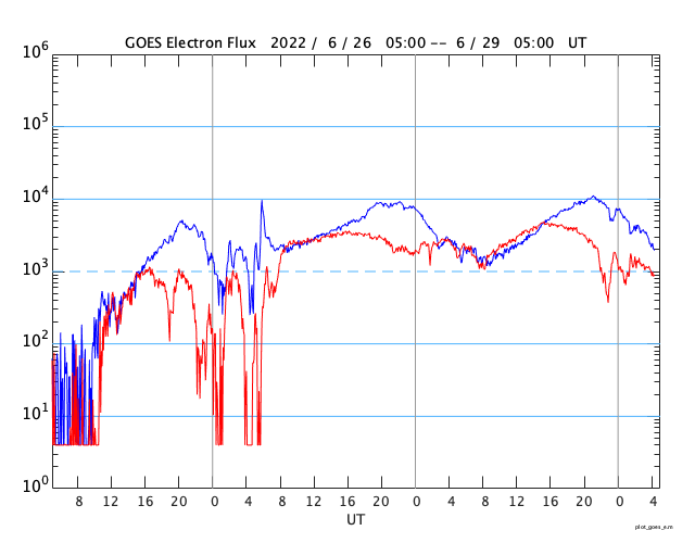 GOES衛星の太陽X線強度。赤・橙 = 0.1〜0.8 nm、青・紫 = 0.05〜0.4 nm (c) データ:NOAA/SWPC、作図:宇宙天気ニュース ![]() GOES衛星による、静止衛星軌道における高エネルギー電子 ( 2 MeV 以上 ) の変化 (c) データ:NOAA/SWPC、作図:宇宙天気ニュース ![]() | ||||||||||||||||||||||||||||||||||||||||||||||||||||||||||||||||||||||||||||||||||||||||||||||||||||||||||||||||||||||||||||||||||||||||||||||||||||||||||||||||||||||||||||||||||||||||||||||||||||||||||||||||||||||||||||||