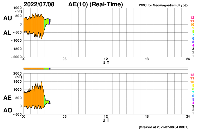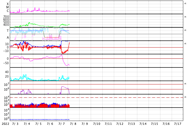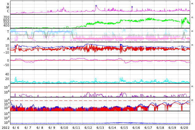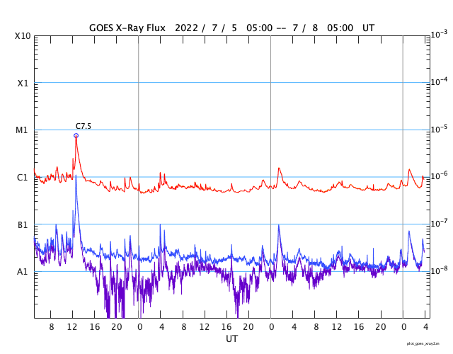 GOES衛星の太陽X線強度。赤・橙 = 0.1〜0.8 nm、青・紫 = 0.05〜0.4 nm (c) データ:NOAA/SWPC、作図:宇宙天気ニュース ![]() | ||||||||||||||||||||||||||||||||||||||||||||||||||||||||||||||||||||||||||||||||||||||||||||||||||||||||||||||||||||||||||||||||||||||||||||||||||||||||||||||||||||||||||||||||||||||||||||||||||||||||||||||||||||||||||||||||||