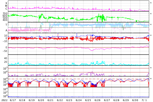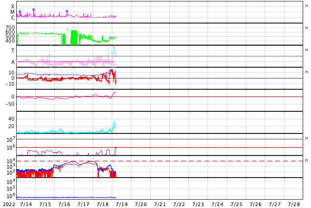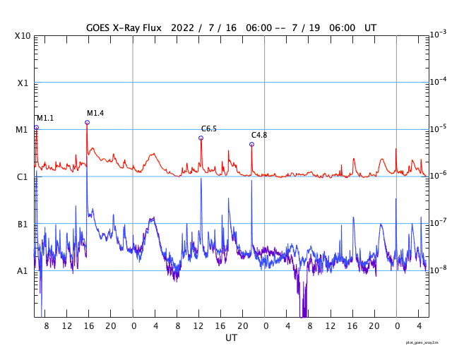 GOES衛星の太陽X線強度。赤・橙 = 0.1〜0.8 nm、青・紫 = 0.05〜0.4 nm (c) データ:NOAA/SWPC、作図:宇宙天気ニュース ![]() | |||||||||||||||||||||||||||||||||||||||||||||||||||||||||||||||||||||||||||||||||||||||||||||||||||||||||||||||||||||||||||||||||||||||||||||||||||||||||||||||||||||||||||||||||||||||||||||||||||||||||||||||||||||||||||||||||||||||||||||||||||||