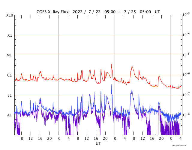 GOES衛星の太陽X線強度。赤・橙 = 0.1〜0.8 nm、青・紫 = 0.05〜0.4 nm (c) データ:NOAA/SWPC、作図:宇宙天気ニュース ![]() | |||||||||||||||||||||||||||||||||||||||||||||||||||||||||||||||||||||||||||||||||||||||||||||||||||||||||||||||||||||||||||||||||||||||||||||||||||||||||||||||||||||||||||||||||||||||||||||||||||||||||||||||||||||||||||||||||||||||||||||||||||