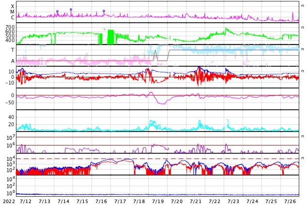 GOES衛星による、静止衛星軌道における高エネルギー電子 ( 2 MeV 以上 ) の変化 (c) データ:NOAA/SWPC、作図:宇宙天気ニュース ![]() | ||||||||||||||||||||||||||||||||||||||||||||||||||||||||||||||||||||||||||||||||||||||||||||||||||||||||||||||||||||||||||||||||||||||||||||||||||||||||||||||||||||||||||||||||||||||||||||||||||||||||||||||||||||||||||||||||||||||