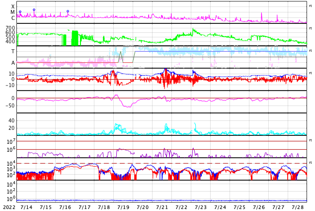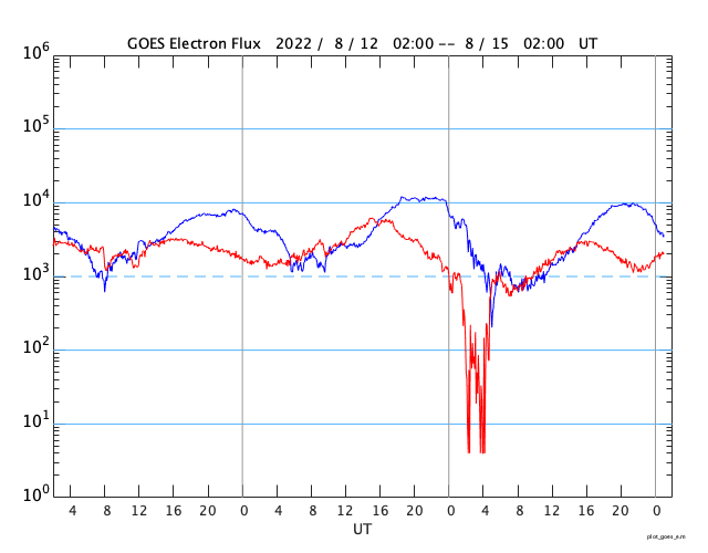 GOES衛星による、静止衛星軌道における高エネルギー電子 ( 2 MeV 以上 ) の変化 (c) データ:NOAA/SWPC、作図:宇宙天気ニュース ![]() | ||||||||||||||||||||||||||||||||||||||||||||||||||||||||||||||||||||||||||||||||||||||||||||||||||||||||||||||||||||||||||||||||||||||||||||||||||||||||||||||||||||||||||||||||||||||||||||||||||||||||||||||||||||||||||||||||||||||||||||||||||||||