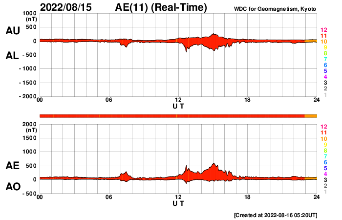 (c) SDO (NASA)、(動画加工 : 宇宙天気ニュース) ![]() 3078黒点群の拡大写真。SDO衛星。 (c) SDO (NASA)、作図:宇宙天気ニュース ![]() 太陽の南西側で発生したフィラメント噴出。GOES衛星SUVI 304。 (c) GOES (NOAA)、(動画加工 : 宇宙天気ニュース) ![]() 太陽から次々と噴出するCMEの様子。SOHO衛星LASCO C2、C3。 (c) SOHO (ESA & NASA)、 (動画加工 : 宇宙天気ニュース) ![]() 3078群のC5.9フレアに伴う噴出。GOES衛星SUVI 304。 (c) GOES (NOAA)、(動画加工 : 宇宙天気ニュース) ![]() SDO衛星のAIA193カメラによる太陽コロナの様子 (c) SDO (NASA) ![]() SDO衛星による太陽の可視光写真。マウスの矢印を写真に重ねると、黒点番号付きの写真に切り替わります。 (c) SDO (NASA) ![]() GOES衛星の太陽X線強度。赤・橙 = 0.1〜0.8 nm、青・紫 = 0.05〜0.4 nm (c) データ:NOAA/SWPC、作図:宇宙天気ニュース ![]() DSCOVRが観測した太陽風の磁場(黒線は全体の強度、赤線は南北成分) 磁場の向き、プラズマの密度、速度、温度 (c) データ:NOAA/SWPC、作図:宇宙天気ニュース ![]() AE指数(速報値) 下段のAEグラフの値が高くなると、オーロラ活動が活発化しています。 (c) 京都大学WDC ![]() ![]() 27日の太陽周期に合わせた図 太陽が同じ面を地球に向けていた27日前の変化から、今後を予想することができます。 (c) 作図:宇宙天気ニュース