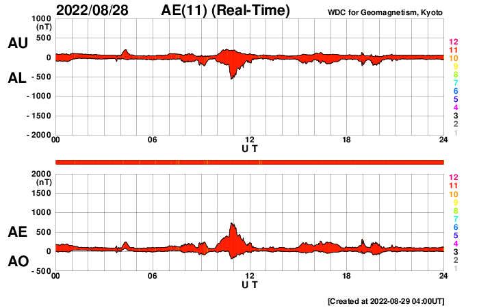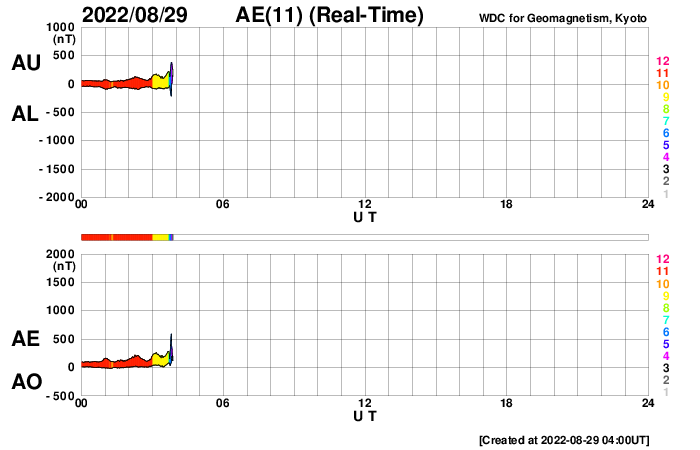 (c) SDO (NASA)、(動画加工 : 宇宙天気ニュース) ![]() SDO衛星AIA171によるポストフレアループの様子。 (c) SDO (NASA)、(動画加工 : 宇宙天気ニュース) ![]() 太陽の右に向かって噴出するCME。SOHO衛星LASCO C2、C3。 (c) SOHO (ESA & NASA)、 (動画加工 : 宇宙天気ニュース) ![]() 3089黒点群の拡大写真。SDO衛星。 (c) SDO (NASA)、作図:宇宙天気ニュース ![]() SDO衛星のAIA193カメラによる太陽コロナの様子 (c) SDO (NASA) ![]() SDO衛星による太陽の可視光写真。マウスの矢印を写真に重ねると、黒点番号付きの写真に切り替わります。 (c) SDO (NASA) ![]() GOES衛星の太陽X線強度。赤・橙 = 0.1〜0.8 nm、青・紫 = 0.05〜0.4 nm (c) データ:NOAA/SWPC、作図:宇宙天気ニュース ![]() DSCOVRが観測した太陽風の磁場(黒線は全体の強度、赤線は南北成分) 磁場の向き、プラズマの密度、速度、温度 (c) データ:NOAA/SWPC、作図:宇宙天気ニュース ![]() AE指数(速報値) 下段のAEグラフの値が高くなると、オーロラ活動が活発化しています。 (c) 京都大学WDC ![]() ![]() 27日の太陽周期に合わせた図 太陽が同じ面を地球に向けていた27日前の変化から、今後を予想することができます。 (c) 作図:宇宙天気ニュース