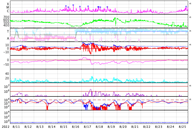 GOES衛星による、静止衛星軌道における高エネルギー電子 ( 2 MeV 以上 ) の変化 (c) データ:NOAA/SWPC、作図:宇宙天気ニュース ![]() | ||||||||||||||||||||||||||||||||||||||||||||||||||||||||||||||||||||||||||||||||||||||||||||||||||||||||||||||||||||||||||||||||||||||||||||||||||||||||||||||||||||||||||||||||||||||||||||||||||||||||||||||||||||||||||||||||||||||||||||||||||||||||||||||||||||