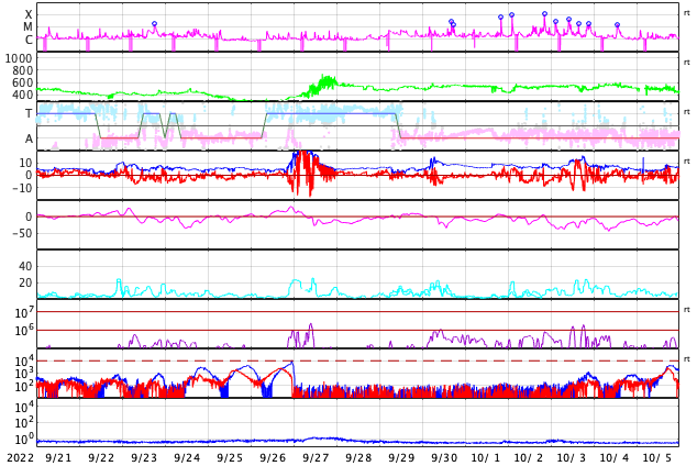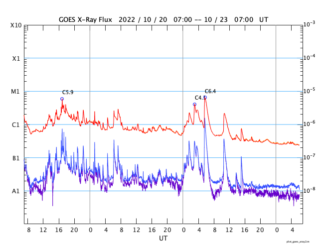 GOES衛星の太陽X線強度。赤・橙 = 0.1〜0.8 nm、青・紫 = 0.05〜0.4 nm (c) データ:NOAA/SWPC、作図:宇宙天気ニュース ![]() | |||||||||||||||||||||||||||||||||||||||||||||||||||||||||||||||||||||||||||||||||||||||||||||||||||||||||||||||||||||||||||||||||||||||||||||||||||||||||||||||||||||||||||||||||||||||||||||||||||||||||||||||||||||||||||||||||||||||||||||||||||||||