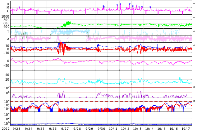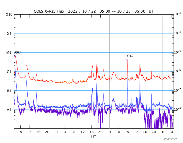 GOES衛星の太陽X線強度。赤・橙 = 0.1〜0.8 nm、青・紫 = 0.05〜0.4 nm (c) データ:NOAA/SWPC、作図:宇宙天気ニュース ![]() | |||||||||||||||||||||||||||||||||||||||||||||||||||||||||||||||||||||||||||||||||||||||||||||||||||||||||||||||||||||||||||||||||||||||||||||||||||||||||||||||||||||||||||||||||||||||||||||||||||||||||||||||||||||||||||||||||