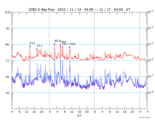 GOES衛星の太陽X線強度。赤・橙 = 0.1〜0.8 nm、青・紫 = 0.05〜0.4 nm (c) データ:NOAA/SWPC、作図:宇宙天気ニュース ![]() | |||||||||||||||||||||||||||||||||||||||||||||||||||||||||||||||||||||||||||||||||||||||||||||||||||||||||||||||||||||||||||||||||||||||||||||||||||||||||||||||||||||||||||||||||||||||||||||||||||||||||||||||||||||||||||||||||||||||||||||||||||||||||||||||||||||||||||||||||