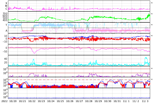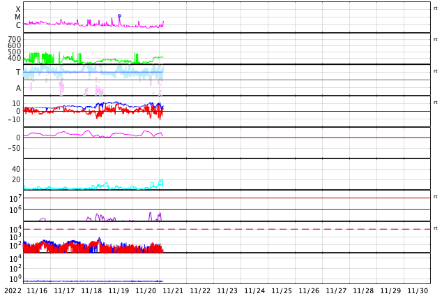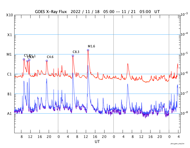 GOES衛星の太陽X線強度。赤・橙 = 0.1〜0.8 nm、青・紫 = 0.05〜0.4 nm (c) データ:NOAA/SWPC、作図:宇宙天気ニュース ![]() | |||||||||||||||||||||||||||||||||||||||||||||||||||||||||||||||||||||||||||||||||||||||||||||||||||||||||||||||||||||||||||||||||||||||||||||||||||||||||||||||||||||||||||||||||||||||||||||||||||||||||||||||||||||||||||||||||||||||||