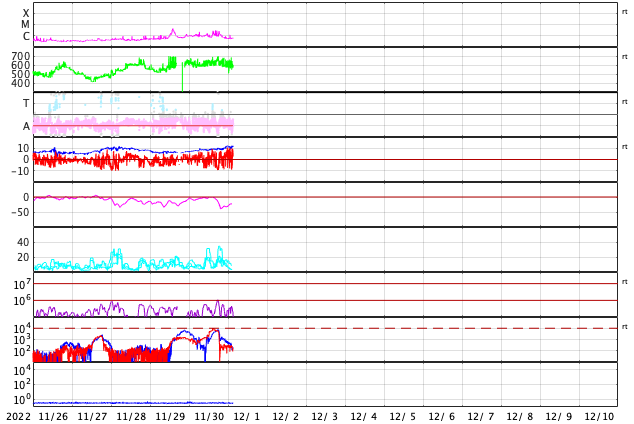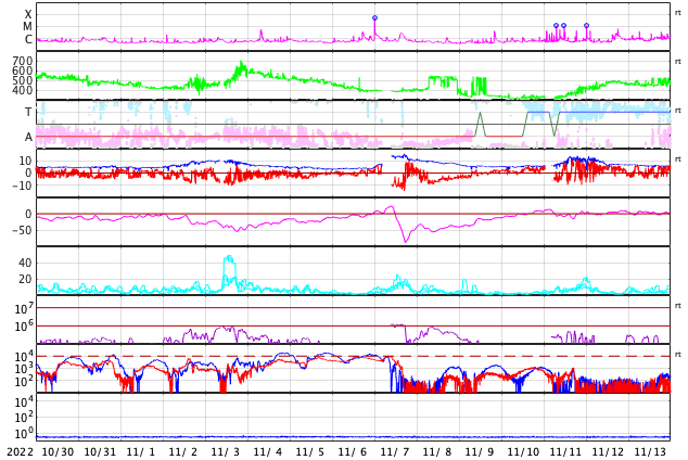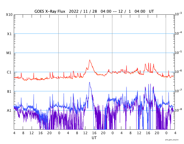 GOES衛星の太陽X線強度。赤・橙 = 0.1〜0.8 nm、青・紫 = 0.05〜0.4 nm (c) データ:NOAA/SWPC、作図:宇宙天気ニュース ![]() | |||||||||||||||||||||||||||||||||||||||||||||||||||||||||||||||||||||||||||||||||||||||||||||||||||||||||||||||||||||||||||||||||||||||||||||||||||||||||||||||||||||||||||||||||||||||||||||||||||||||||||||||||||||||