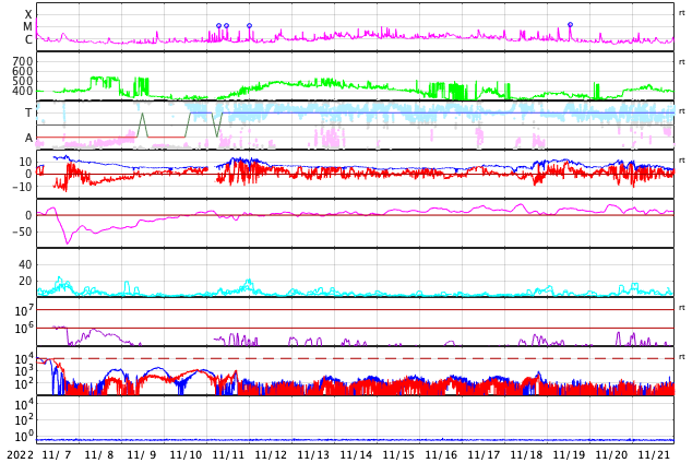 2022/12/ 6 11:31 太陽風は平均的な速度に戻っています。磁気圏は穏やかです。