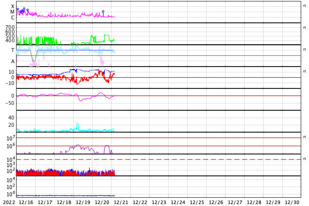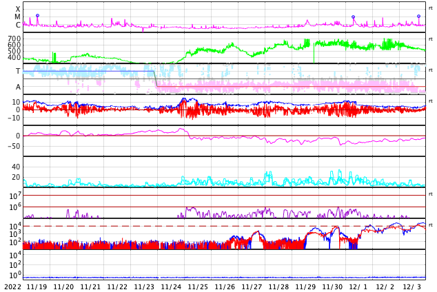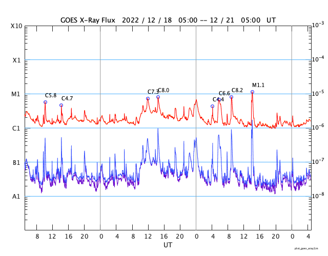 GOES衛星の太陽X線強度。赤・橙 = 0.1〜0.8 nm、青・紫 = 0.05〜0.4 nm (c) データ:NOAA/SWPC、作図:宇宙天気ニュース ![]() | |||||||||||||||||||||||||||||||||||||||||||||||||||||||||||||||||||||||||||||||||||||||||||||||||||||||||||||||||||||||||||||||||||||||||||||||||||||||||||||||||||||||||||||||||||||||||||||||||||||||||||||||||||||||||||||||||||||||||||||||||||||||||||||||||||||||||||||||||||