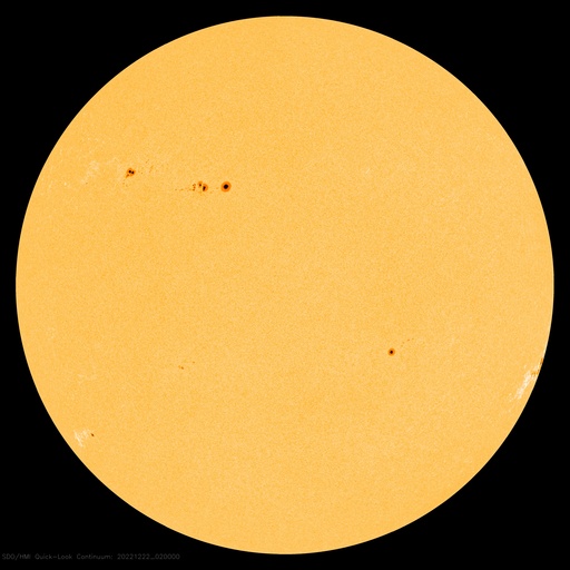SDO衛星による太陽の可視光写真。マウスの矢印を写真に重ねると、黒点番号付きの写真に切り替わります。