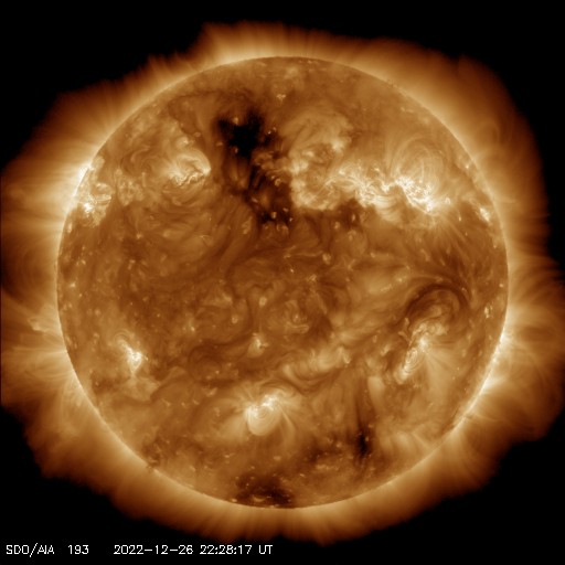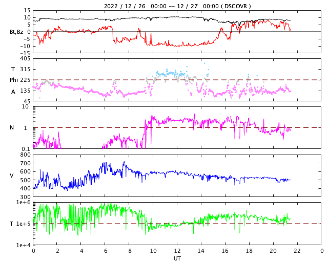2022/12/26 08:53 太陽風の速度は少し下がり、やや高速になっている様です。