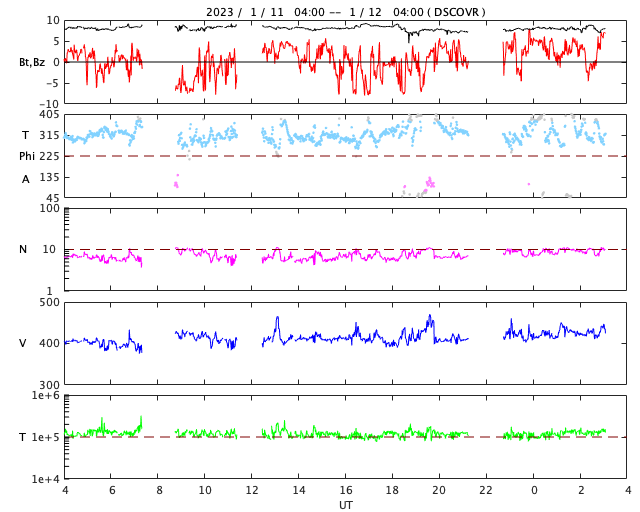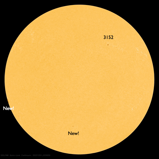 (c) 黒点データ:WDC-SILSO、作図:宇宙天気ニュース ![]() 12月の太陽黒点の推移。SDO衛星。 (c) SDO (NASA)、(動画加工 : 宇宙天気ニュース) ![]() 1970年以降の太陽黒点相対数の長期変化。 (c) 黒点データ:WDC-SILSO、作図:宇宙天気ニュース ![]() 太陽の向こう側で発生した現象によるCME。 (c) SOHO衛星LASCO C2 (ESA & NASA)、(動画加工 : 宇宙天気ニュース) ![]() SDO衛星のAIA193カメラによる太陽コロナの様子 (c) SDO (NASA) ![]() SDO衛星による太陽の可視光写真。マウスの矢印を写真に重ねると、黒点番号付きの写真に切り替わります。 (c) SDO (NASA) ![]() GOES衛星の太陽X線強度。赤・橙 = 0.1〜0.8 nm、青・紫 = 0.05〜0.4 nm (c) データ:NOAA/SWPC、作図:宇宙天気ニュース ![]() DSCOVRが観測した太陽風の磁場(黒線は全体の強度、赤線は南北成分) 磁場の向き、プラズマの密度、速度、温度 (c) データ:NOAA/SWPC、作図:宇宙天気ニュース ![]() AE指数(速報値) 下段のAEグラフの値が高くなると、オーロラ活動が活発化しています。 (c) 京都大学WDC ![]() ![]() 27日の太陽周期に合わせた図 太陽が同じ面を地球に向けていた27日前の変化から、今後を予想することができます。 (c) 作図:宇宙天気ニュース