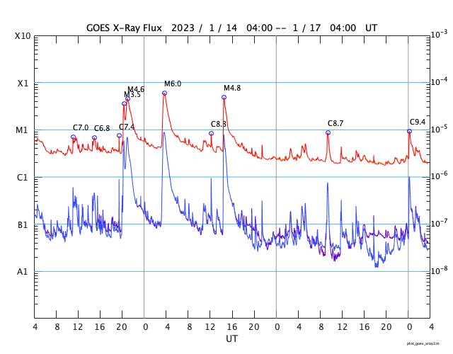 GOES衛星の太陽X線強度。赤・橙 = 0.1〜0.8 nm、青・紫 = 0.05〜0.4 nm (c) データ:NOAA/SWPC、作図:宇宙天気ニュース ![]() | |||||||||||||||||||||||||||||||||||||||||||||||||||||||||||||||||||||||||||||||||||||||||||||||||||||||||||||||||||||||||||||||||||||||||||||||||||||||||||||||||||||||||||||||||||||||||||||||||||||||||||||||||||||||||||||||||||||||||||||||||||||||||||||||||||||||||||||||||||||||||||||