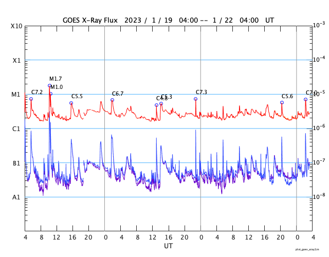 GOES衛星の太陽X線強度。赤・橙 = 0.1〜0.8 nm、青・紫 = 0.05〜0.4 nm (c) データ:NOAA/SWPC、作図:宇宙天気ニュース ![]() | |||||||||||||||||||||||||||||||||||||||||||||||||||||||||||||||||||||||||||||||||||||||||||||||||||||||||||||||||||||||||||||||||||||||||||||||||||||||||||||||||||||||||||||||||||||||||||||||||||||||||||||||||||||||||||||||||||||||||||||||||||||||||||||||||||||||||||||||||||||||||||||||||