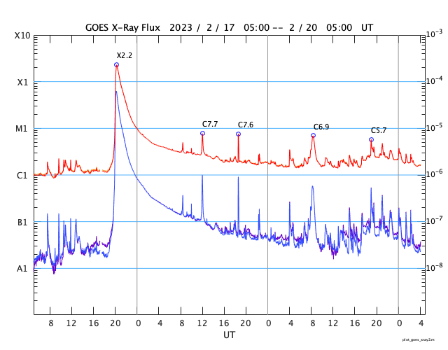 GOES衛星の太陽X線強度。赤・橙 = 0.1〜0.8 nm、青・紫 = 0.05〜0.4 nm (c) データ:NOAA/SWPC、作図:宇宙天気ニュース ![]() | ||||||||||||||||||||||||||||||||||||||||||||||||||||||||||||||||||||||||||||||||||||||||||||||||||||||||||||||||||||||||||||||||||||||||||||||||||||||||||||||||||||||||||||||||||||||||||||||||||||||||||||||||||||||||||||||||||||||||||||||||||||||||||||||||||||||