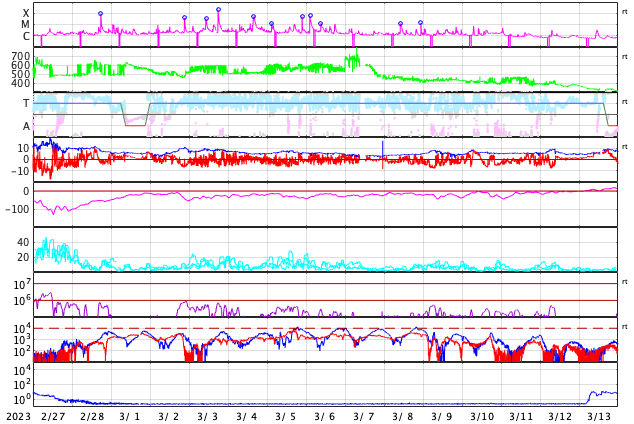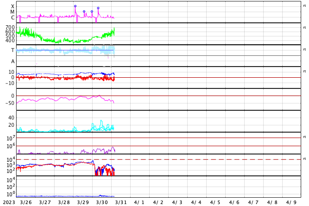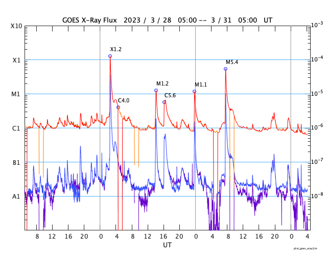 GOES衛星の太陽X線強度。赤・橙 = 0.1〜0.8 nm、青・紫 = 0.05〜0.4 nm (c) データ:NOAA/SWPC、作図:宇宙天気ニュース ![]() | |||||||||||||||||||||||||||||||||||||||||||||||||||||||||||||||||||||||||||||||||||||||||||||||||||||||||||||||||||||||||||||||||||||||||||||||||||||||||||||||||||||||||||||||||||||||||||||||||||||||||||||||||||||||||||||||||||||||||||||||||||||||||||||||||||||