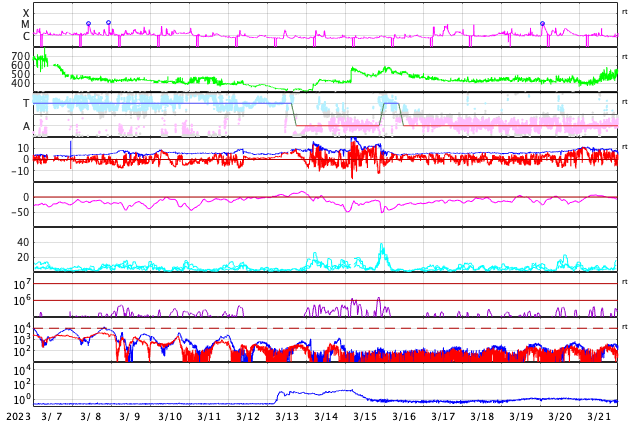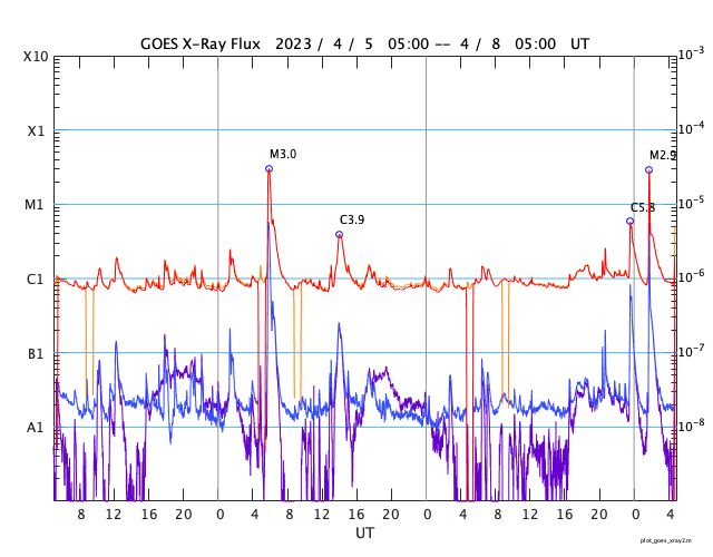 GOES衛星の太陽X線強度。赤・橙 = 0.1〜0.8 nm、青・紫 = 0.05〜0.4 nm (c) データ:NOAA/SWPC、作図:宇宙天気ニュース ![]() | |||||||||||||||||||||||||||||||||||||||||||||||||||||||||||||||||||||||||||||||||||||||||||||||||||||||||||||||||||||||||||||||||||||||||||||||||||||||||||||||||||||||||||||||||||||||||||||||||||||||||||||||||||||||||||||||||||||||||