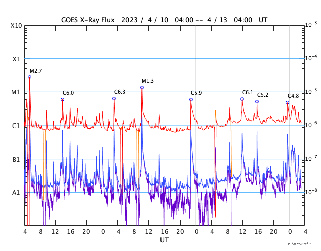 GOES衛星の太陽X線強度。赤・橙 = 0.1〜0.8 nm、青・紫 = 0.05〜0.4 nm (c) データ:NOAA/SWPC、作図:宇宙天気ニュース ![]() | |||||||||||||||||||||||||||||||||||||||||||||||||||||||||||||||||||||||||||||||||||||||||||||||||||||||||||||||||||||||||||||||||||||||||||||||||||||||||||||||||||||||||||||||||||||||||||||||||||||||||||||||||||||||||||||||||||||||||||||||||||||||||||||||||||||||||||||||