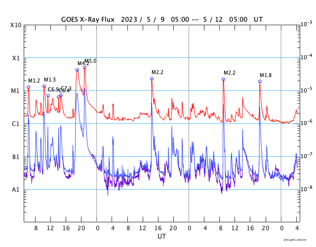 GOES衛星の太陽X線強度。赤・橙 = 0.1〜0.8 nm、青・紫 = 0.05〜0.4 nm (c) データ:NOAA/SWPC、作図:宇宙天気ニュース ![]() | ||||||||||||||||||||||||||||||||||||||||||||||||||||||||||||||||||||||||||||||||||||||||||||||||||||||||||||||||||||||||||||||||||||||||||||||||||||||||||||||||||||||||||||||||||||||||||||||||||||||||||||||||||||||||||||||||||||||||||||||||||||||||||||||||||||||||||||||||||||||||||||||||||||||