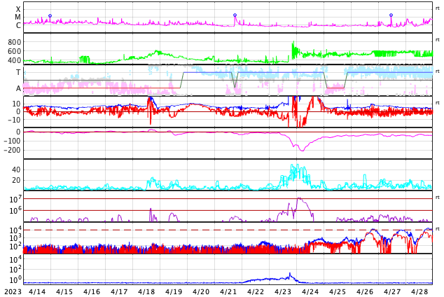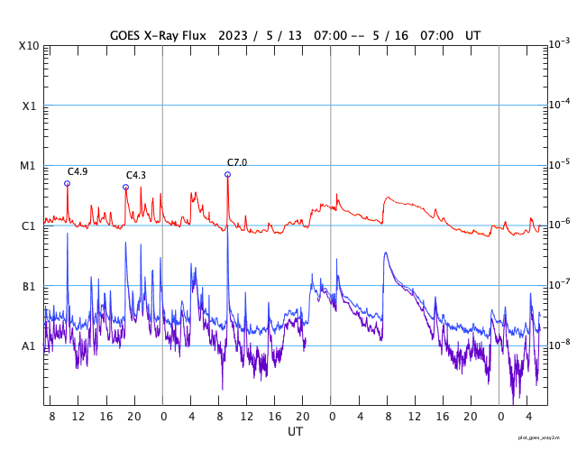 GOES衛星の太陽X線強度。赤・橙 = 0.1〜0.8 nm、青・紫 = 0.05〜0.4 nm (c) データ:NOAA/SWPC、作図:宇宙天気ニュース ![]() | |||||||||||||||||||||||||||||||||||||||||||||||||||||||||||||||||||||||||||||||||||||||||||||||||||||||||||||||||||||||||||||||||||||||||||||||||||||||||||||||||||||||||||||||||||||||||||||||||||||||||||||||||||||||||||||||||||||||||||||||||||||||||