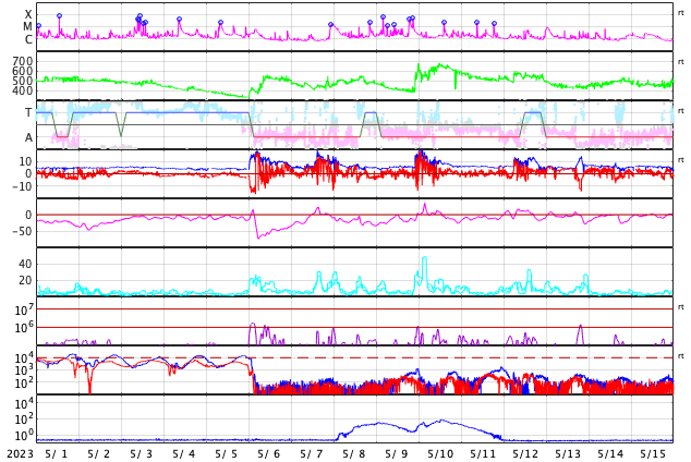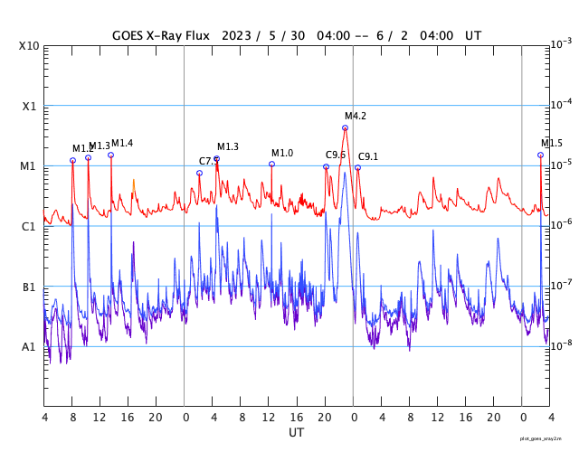 GOES衛星の太陽X線強度。赤・橙 = 0.1〜0.8 nm、青・紫 = 0.05〜0.4 nm (c) データ:NOAA/SWPC、作図:宇宙天気ニュース ![]() | ||||||||||||||||||||||||||||||||||||||||||||||||||||||||||||||||||||||||||||||||||||||||||||||||||||||||||||||||||||||||||||||||||||||||||||||||||||||||||||||||||||||||||||||||||||||||||||||||||||||||||||||||||||||||||||||||||||||||||||||||||||||||||||||||||||||||||||||||||||||||||||||||||||||||||||||||||||||||||||||||||