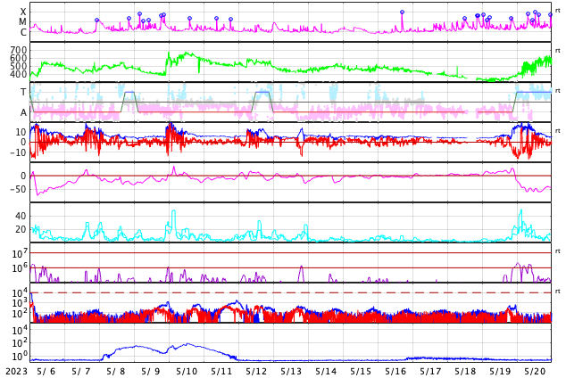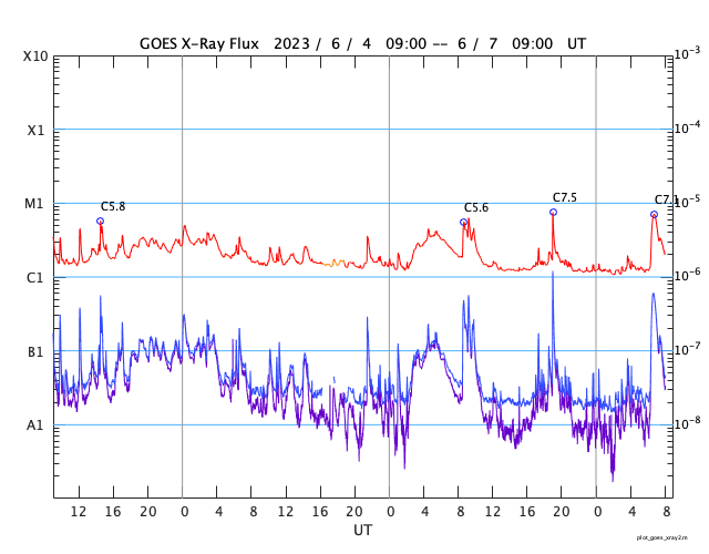 GOES衛星の太陽X線強度。赤・橙 = 0.1〜0.8 nm、青・紫 = 0.05〜0.4 nm (c) データ:NOAA/SWPC、作図:宇宙天気ニュース ![]() | |||||||||||||||||||||||||||||||||||||||||||||||||||||||||||||||||||||||||||||||||||||||||||||||||||||||||||||||||||||||||||||||||||||||||||||||||||||||||||||||||||||||||||||||||||||||||||||||||||||||||||||||||||||||||||||||||||||||||||||||||||||||||||||||||