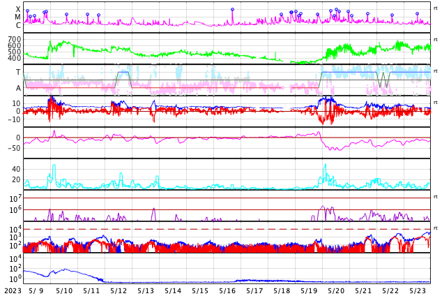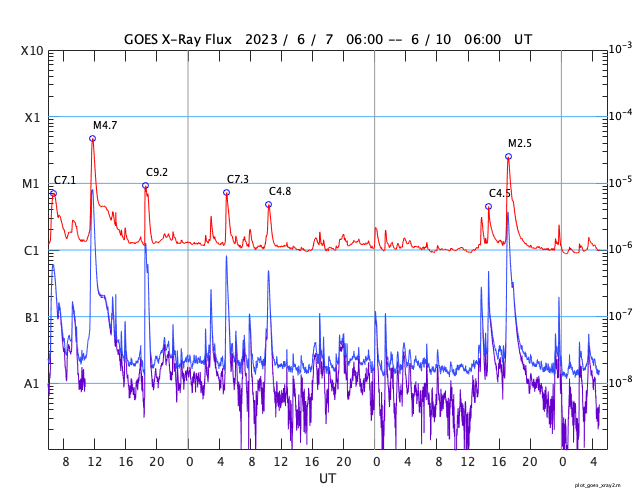 GOES衛星の太陽X線強度。赤・橙 = 0.1〜0.8 nm、青・紫 = 0.05〜0.4 nm (c) データ:NOAA/SWPC、作図:宇宙天気ニュース ![]() | ||||||||||||||||||||||||||||||||||||||||||||||||||||||||||||||||||||||||||||||||||||||||||||||||||||||||||||||||||||||||||||||||||||||||||||||||||||||||||||||||||||||||||||||||||||||||||||||||||||||||||||||||||||||||||||||||||||||||||||||||||||||||||||||||||