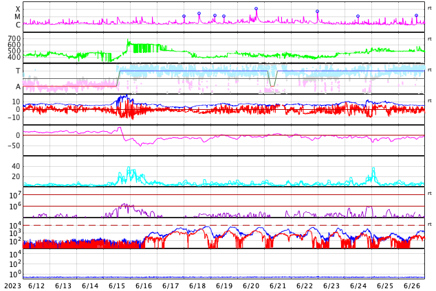 GOES衛星の太陽X線強度。赤・橙 = 0.1〜0.8 nm、青・紫 = 0.05〜0.4 nm (c) データ:NOAA/SWPC、作図:宇宙天気ニュース ![]() | ||||||||||||||||||||||||||||||||||||||||||||||||||||||||||||||||||||||||||||||||||||||||||||||||||||||||||||||||||||||||||||||||||||||||||||||||||||||||||||||||||||||||||||||||||||||||||||||||||||||||||||||||||||||||||||||||||||||||||||||||||||||||||||||||||||||||||||||||||||||||||||||||||||||||||||||||||||||||||||||||||||||||||
