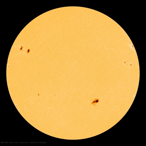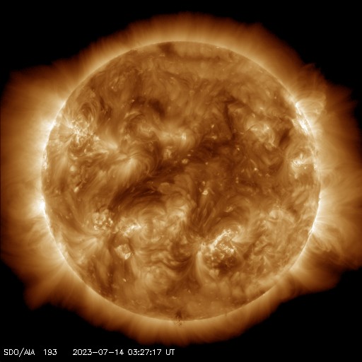 2023/ 7/14 13:31 更新 太陽風は低速の状態ですが、磁場が南向きに強まっています。 担当 篠原 太陽風は、昨夜、13日20時(世界時13日11時)と、 14日1時(世界時13日16時)に、 速度や磁場強度が小規模ですが 急に強まる変化が発生しています。 11日のニュースでお知らせした、 10日の昼に発生したCME(コロナ質量放出)による 変化かもしれません。 速度は300km/秒から350km/秒に高まった程度で、 低速の状態が続いています。 磁場強度は、5nTから10nTへ強まっていて、 南北成分が変化の初めは北向きに強まっていましたが、 次第に南向きに切り替わり、 現在は -10nTまで強まっています。 これにより磁気圏の活動も少し高まっていて、 AE指数は、初めはほとんど変化がありませんでしたが、 最後は700nTの中規模の変化になっています。 もうしばらくこのくらいの変化が続くかもしれません。 昨日紹介した様に、12日朝に発生したCMEの影響が 明日、15日にやって来る可能性があります。 こちらの変化にも注目してください。 太陽の北東(左上)の3372黒点群は、 昨日の午後以降、C9.3、C5.1、C9.7などの (申し訳ありません。誤って上記の C を M と書いていました) 小規模フレアを起こし、 今朝、14日4時(世界時13日19時)には、 M2.1の中規模フレアを起こしました。 その後は落ち着いている様子ですが、 引き続き注目してください。 太陽の東端(左端)の南北に新しい黒点が現れています。 どの様な活動度の領域でしょうか。 ![]() SDO衛星のAIA193カメラによる太陽コロナの様子 (c) SDO (NASA) ![]() SDO衛星による太陽の可視光写真。マウスの矢印を写真に重ねると、黒点番号付きの写真に切り替わります。 (c) SDO (NASA) ![]() DSCOVRが観測した太陽風の磁場(黒線は全体の強度、赤線は南北成分) 磁場の向き、プラズマの密度、速度、温度 (c) データ:NOAA/SWPC、作図:宇宙天気ニュース ![]() AE指数(速報値) 下段のAEグラフの値が高くなると、オーロラ活動が活発化しています。 (c) 京都大学WDC ![]() ![]() 27日の太陽周期に合わせた図 太陽が同じ面を地球に向けていた27日前の変化から、今後を予想することができます。 (c) 作図:宇宙天気ニュース