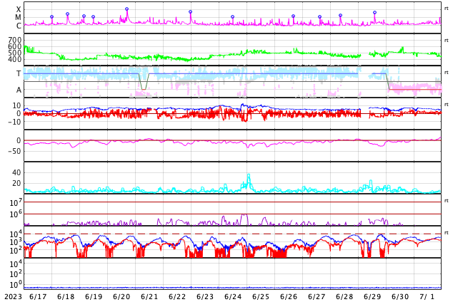 | 太陽フレア・磁気嵐・オーロラ活動など、宇宙天気の最新情報をお知らせするページです。 |