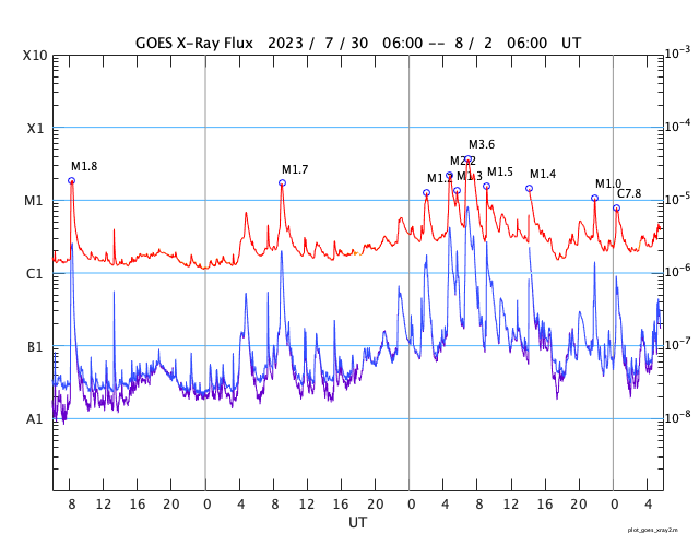GOES衛星の太陽X線強度。赤・橙 = 0.1〜0.8 nm、青・紫 = 0.05〜0.4 nm (c) データ:NOAA/SWPC、作図:宇宙天気ニュース ![]() | |||||||||||||||||||||||||||||||||||||||||||||||||||||||||||||||||||||||||||||||||||||||||||||||||||||||||||||||||||||||||||||||||||||||||||||||||||||||||||||||||||||||||||||||||||||||||||||||||||||||||||||||||||||||||||||||||||||||||||||||||||||||||||||||||||||||||||||||||||||||||||||||||||||||||||