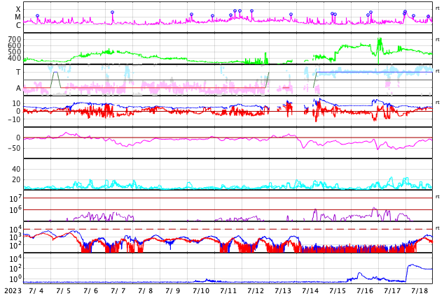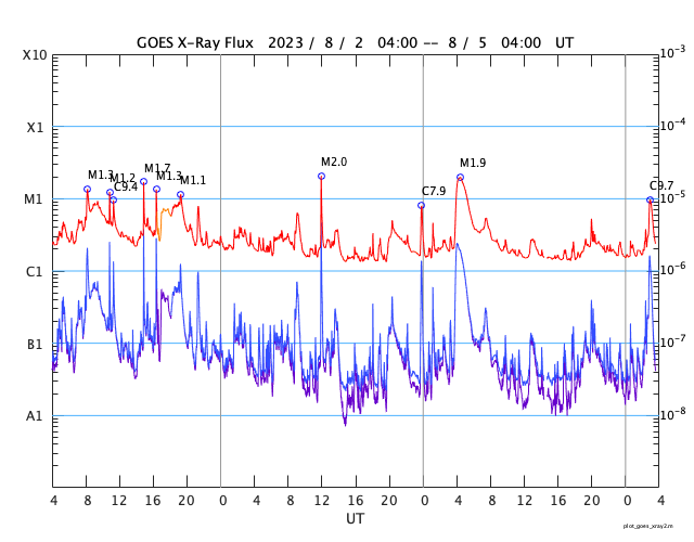 GOES衛星の太陽X線強度。赤・橙 = 0.1〜0.8 nm、青・紫 = 0.05〜0.4 nm (c) データ:NOAA/SWPC、作図:宇宙天気ニュース ![]() | |||||||||||||||||||||||||||||||||||||||||||||||||||||||||||||||||||||||||||||||||||||||||||||||||||||||||||||||||||||||||||||||||||||||||||||||||||||||||||||||||||||||||||||||||||||||||||||||||||||||||||||||||||||||||||||||||||||||||||||||||||||||||||||||||||||||||||||||||||||||||||||||||||||||||||||||