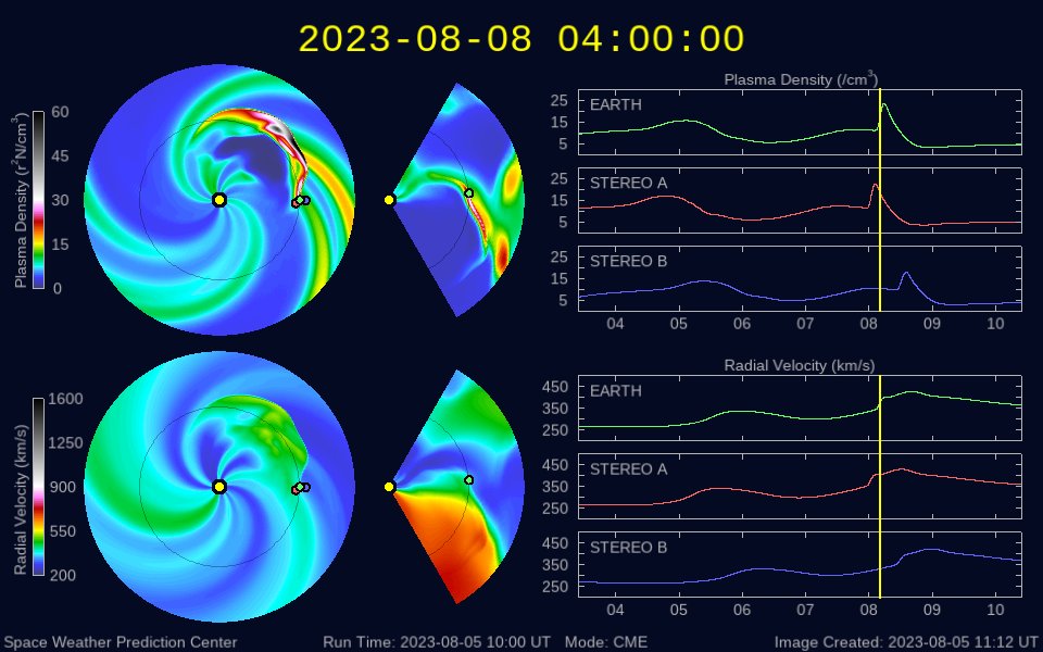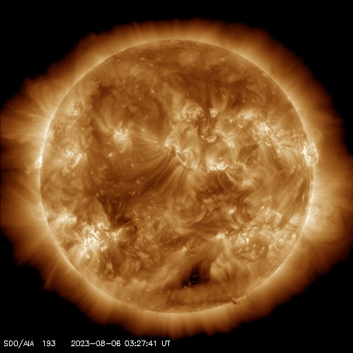 (c) SDO衛星AIA131 (NASA)、(動画加工 : 宇宙天気ニュース) ![]() X1.6の大規模フレアに伴って発生したCME。 (c) SOHO衛星LASCO C2、C3 (ESA & NASA)、(動画加工 : 宇宙天気ニュース) ![]() 太陽の南西の端近くで発生したフィラメント噴出。 (c) GOES衛星SUVI 304 (NOAA)、(動画加工 : 宇宙天気ニュース) ![]() フィラメント噴出によるCME。 (c) SOHO衛星LASCO C2、C3 (ESA & NASA)、(動画加工 : 宇宙天気ニュース) ![]() フィラメント噴出による太陽風の乱れは、8日13時(世界時8日4時)頃に到来する可能性があります。 (c) NOAA/SWPC ![]() SDO衛星のAIA193カメラによる太陽コロナの様子 (c) SDO (NASA) ![]() SDO衛星による太陽の可視光写真。マウスの矢印を写真に重ねると、黒点番号付きの写真に切り替わります。 (c) SDO (NASA) ![]() GOES衛星の太陽X線強度。赤・橙 = 0.1〜0.8 nm、青・紫 = 0.05〜0.4 nm (c) データ:NOAA/SWPC、作図:宇宙天気ニュース ![]() ACEが観測した太陽風の磁場(1番上の枠、白線は全体の強度、赤線は南北成分) および、太陽風の密度(3番目の橙線)、速度(4番目の黄線) (c) NOAA/SWPC ![]() AE指数(速報値) 下段のAEグラフの値が高くなると、オーロラ活動が活発化しています。 (c) 京都大学WDC ![]() ![]() 27日の太陽周期に合わせた図 太陽が同じ面を地球に向けていた27日前の変化から、今後を予想することができます。 (c) 作図:宇宙天気ニュース