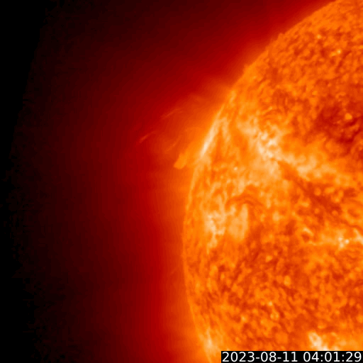 太陽の東端で発生したプロミネンス噴出によるものです。