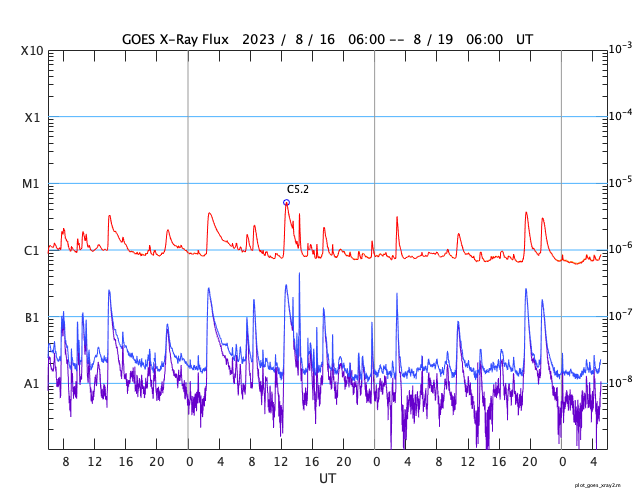 GOES衛星の太陽X線強度。赤・橙 = 0.1〜0.8 nm、青・紫 = 0.05〜0.4 nm (c) データ:NOAA/SWPC、作図:宇宙天気ニュース ![]() | |||||||||||||||||||||||||||||||||||||||||||||||||||||||||||||||||||||||||||||||||||||||||||||||||||||||||||||||||||||||||||||||||||||||||||||||||||||||||||||||||||||||||||||||||||||||||||||||||||||||||||||||||||||||||||||||||||||||||||||||||||||||||||